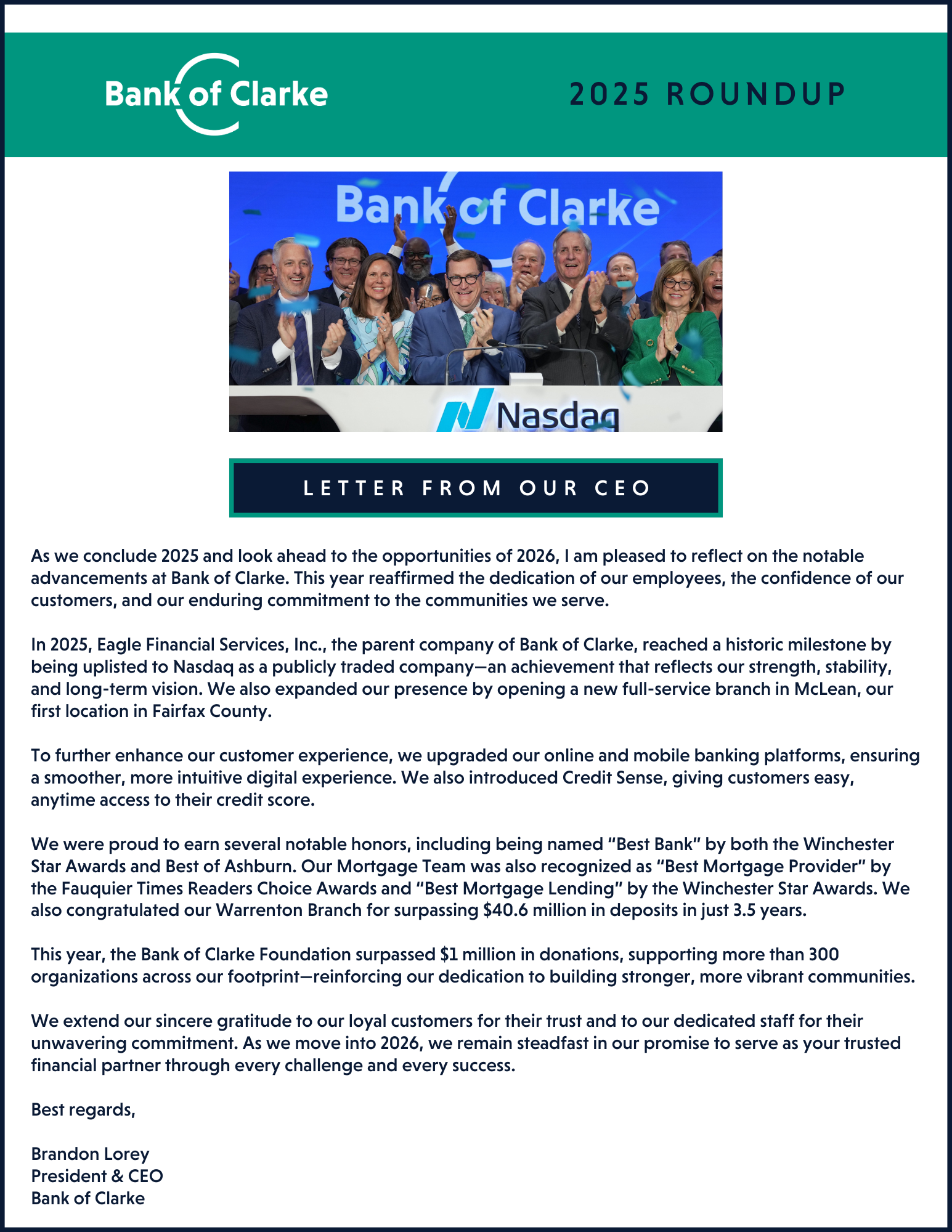 By accessing this link you will be leaving Bank of Clarke County's website and entering a website hosted by another party. The website you will enter may have different security and privacy policies than Bank of Clarke County. Bank of Clarke County does not make any representations regarding the content or policies of the website you are entering. Click 'OK' to enter the other party's website or 'Cancel' to remain on Bank of Clarke County's website.